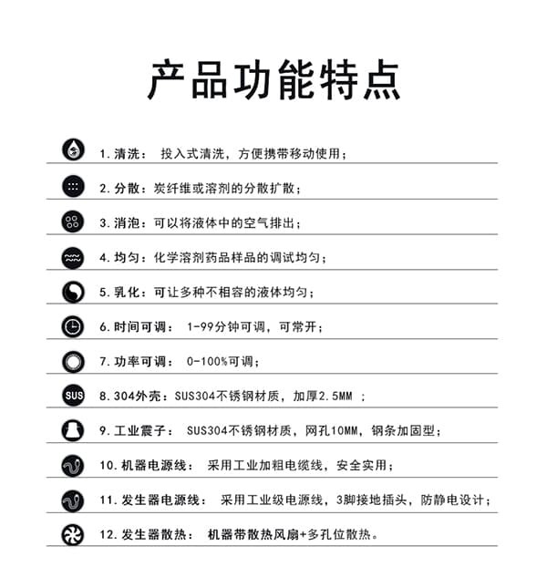 化学生物行业:碳纤维扩散,溶液的混合均匀及加速反应,器皿的清洗除垢等;