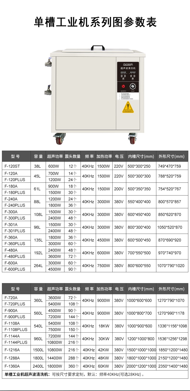 F-240A | 88L 1200W 大型单槽超声波清洗机(功率可调)